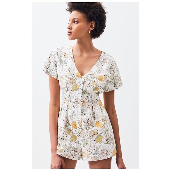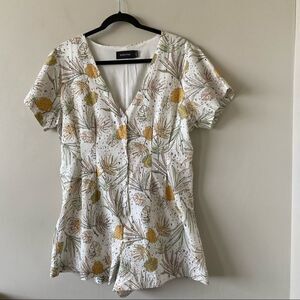 Minkpink Wild Coast Linen Tropical Leaf Print Playsuit (Size:Large)