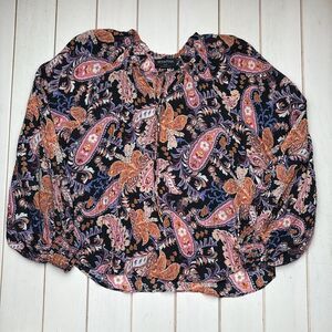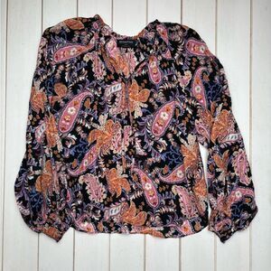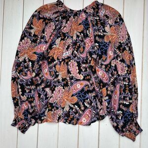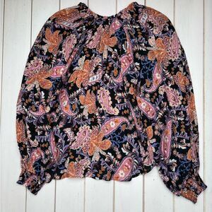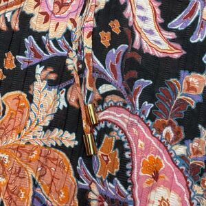 Elevate your wardrobe with this Minkpink Paisley Print Boho Top. Featuring a vibrant multicolor design, this top is perfect for any occasion. Enjoy the blend of style and comfort. Balloon sleeves. Elastic cuffs. Tie up, with metal at the bottom of the ties. 75% viscose/25% polyamide