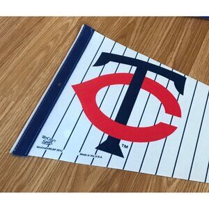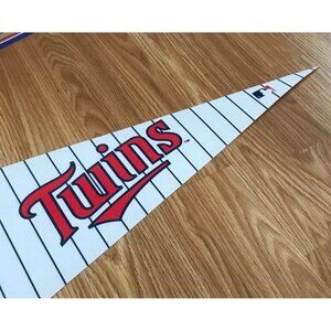 A collectible item for baseball enthusiasts, this vintage Minnesota Twins pennant by WinCraft showcases a classic design. Manufactured in 2012, it features MLB's iconic logo and is crafted in the USA. A perfect addition for sports memorabilia collectors.