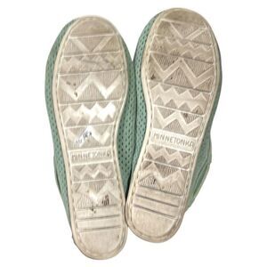 Minnetonka Lisa Slip On Moccasins Loafers Mint Green Perforated Suede Womens 8