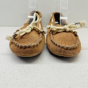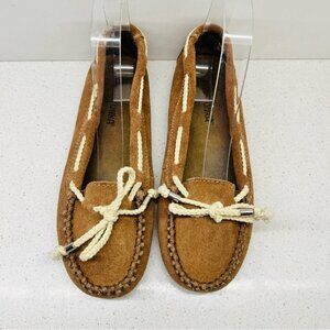 Minnetonka Mocassins Softsole Loafers Leather Camel Tan Lace Up Shoes Sz 6.5