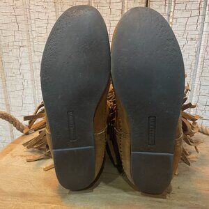 Minnetonka Women's 3-Layer Fringe Tall Moccasins Boots brown suede 7