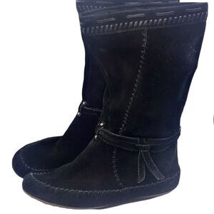 Minnetonka Boots Black Genuine Suede Boots Pull On SZ 9 Boho Western Southwest Y