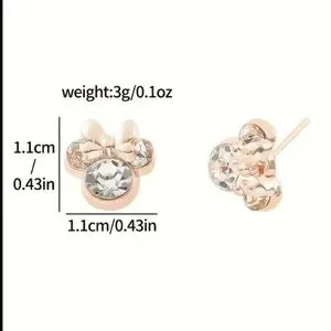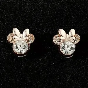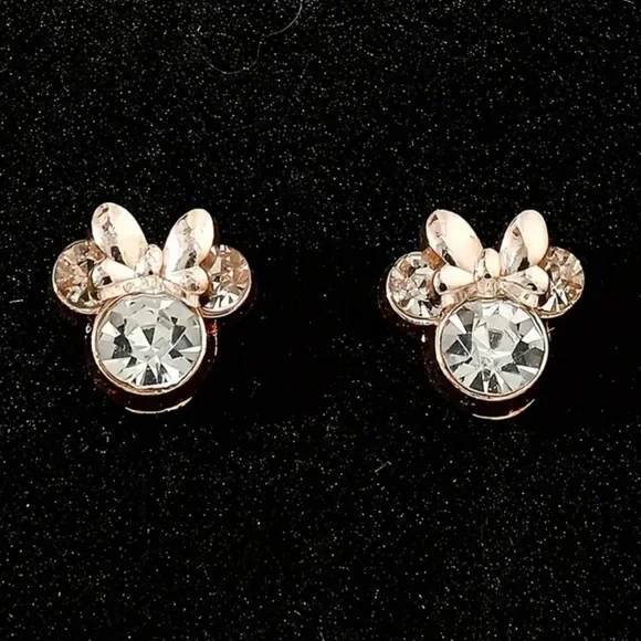 Minnie Mouse stud earrings. Rhinestone head and ears. Rose gold bow.