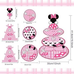 Brand new Minnie Mouse themed cupcake stand. Three tired cupcake stand. Thickened cardboard + coated edge, bright colour, durable, removable and easy to install. Can hold 14~20 standard size cupcakes. Measures 12” wide and 16.5” tall.