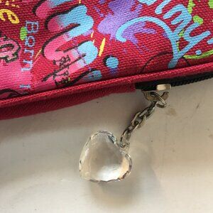 Minnie Mouse Walt Disney World Cosmetic Makeup Bag Case Fabric Lined Red 11" Zip