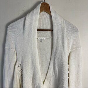 Minnie Rose cotton cashmere blend open front long sleeve cardigan ivory XS/S
