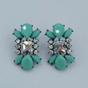 Mint Cabachon & Clear Crystal Earrings Hematite Tone Setting #1226