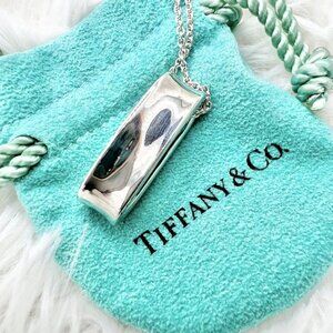 This is a sterling silver oval loop necklace from Tiffany & Co. It comes on a Tiffany sterlling silver 17 inch chain.