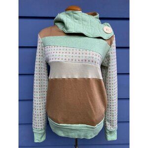 This handmade hoodie is one of a kind, made from recycled upcycled sweatshirts!! Super Comfy and Mega Funky!