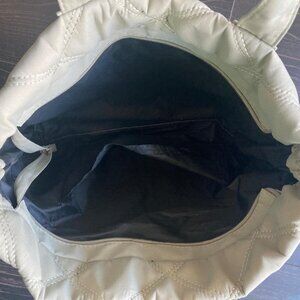Quilted Shoulder Bag, pale mint green colour, bag has zipper and side compartment.