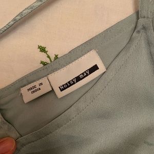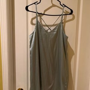 Beautiful Mint Green Satin Dress with criss-cross detailing at the front. Little stain at the front of the dress ( shown in picture) but barely noticeable.