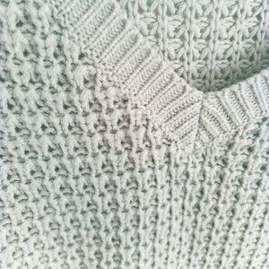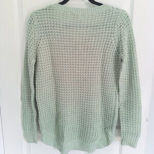 Mint Green V Neck Knit Sweater Rounded Longer Back Hem