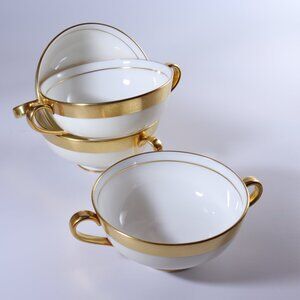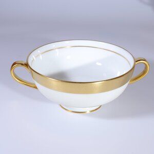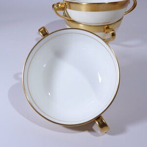 Minton Buckingham Footed Cream Soup Bowl Double Handled Gold Encrusted Rim.