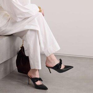 Miraazzurra Womens Black Raffia Slip On Mules Pointed Toe Stiletto High Heels