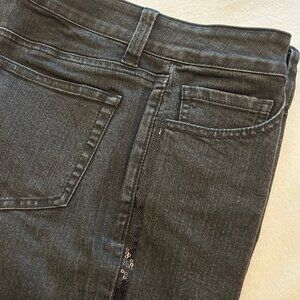 Miracle Body boot cut jeans by the makers of Miracle swimsuits (with tummy control), size 6, black, 78% cotton, 20% polyester, 2% spandex, excellent condition, with very subtle black sequins down the outside seam