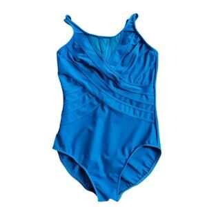 Miraclesuit Illusionist Mesh Neck One Piece Swimsuit, Blue, Swimwear, Size 14