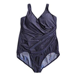 Miraclesuit Plus Size Oceanus One Piece, Pin Point, Blue/White, V-Neck, Size 22W