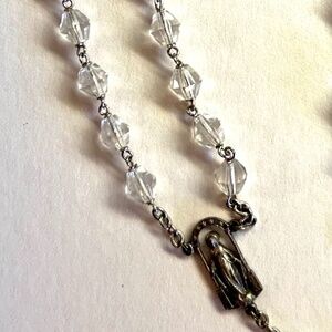 Miraculous Madonna rosary in Swarovski crystal and 925 silver. There was probably a small cross at the end below the Madonna but I did not try to replace it.