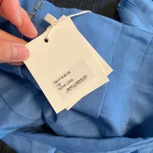 The Mona Ensemble, composed of high waisted extra large pants in blue linen and its matching waistband to tie according to your mood.