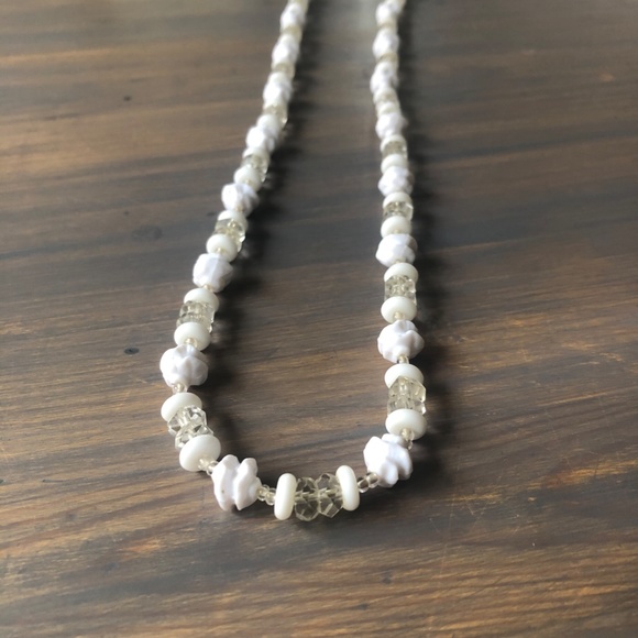 Miriam Haskell Vintage White Plastic & Clear Glass Beads.