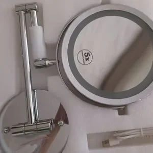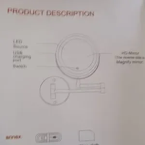 Brand new mirror that has an extendable arm and lights up. This is a wall mounted mirror, and I was looking for a mirror on a stand for my makeup table. New with hardware, original box, instructions, and power cord.