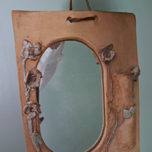 A clay mirror with a cylinder for a flower. Cute and unique piece 😍