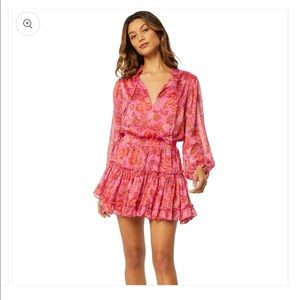 Worn once, excellent 10/10 condition. Still in stores! ❤️ A classic style in our Careyes floral chiffon print features a split neck opening with our signature petal string ties. This playful long sleeve mini dress has an elastic waist and a tiered skirt.