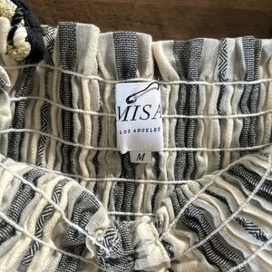 Chic ruffled blouse with textured design. Features black and gray tones.