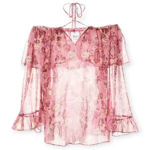 Misa Los Angeles Soraya Floral Pink Ruffle Barbiecore Chiffon Top size S EUC