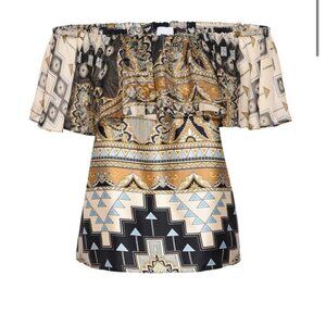 Misa Los Angeles Sz XS Blouse Graziela Top Off The Shoulder Mosaic Ruffle New