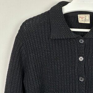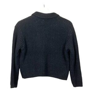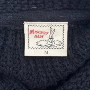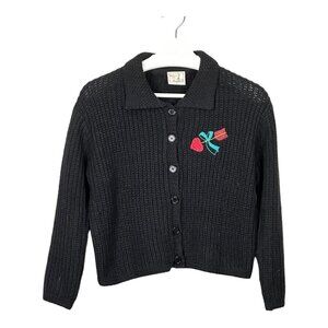 Mischief Made Me and My Arrow Collared Cropped Sweater Black. Collared knit cardigan with embroidered heart arrow on left chest. Bracelet length sleeves. Slightly cropped length. Materials: 100% Acrylic. Excellent condition. No known flaws.