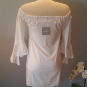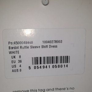 Misguided Bardot white ruffle sleeve shift dress. Fully lined. Elastic at shoulder. Size 4 NWT
