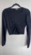 Elegant black long sleeve top with a stylish ruched front. Perfect for any occasion.