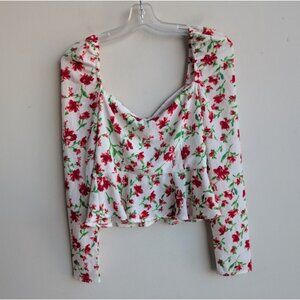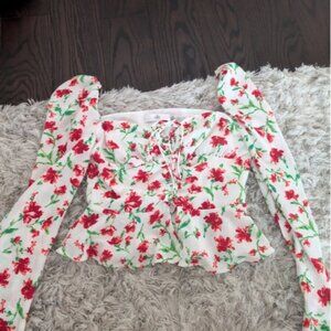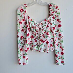 Misguided Square Neck Floral Lace Up Long Sleeve Blouse Top