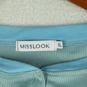 Mislook Womens Sweater Extra Large Blue Green Knit Ribbed Henley Lightweight