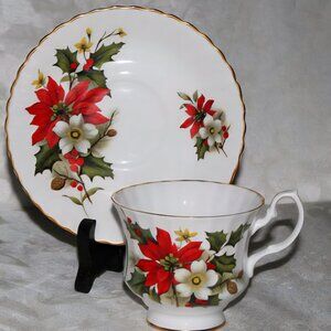 Mismatched Christmas Poinsettia Teacup Set | Bluebird | Crown Regent