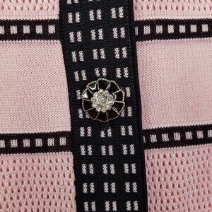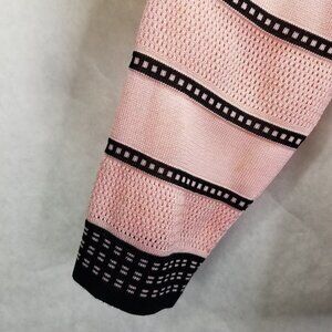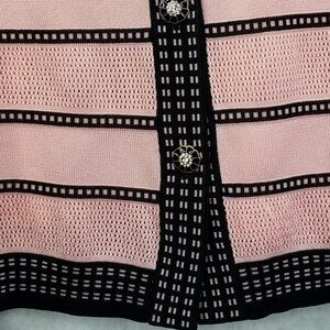 Misook Cardigan Women's L Ribbed Mesh Long Sleeve Button Front Pink Black Stripe