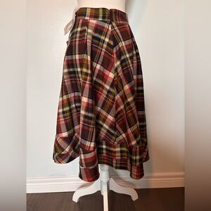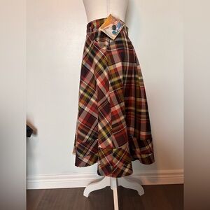 Channel vintage sophistication with this plaid swing skirt features a vibrant mix of colors, perfect for any occasion. Skirt has pockets. The comfortable fit and classic design make it a versatile addition to your wardrobe. Size small. Measurements in pictures. Miss Candyfloss is a Brand from Sweden.