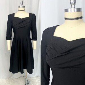 Miss Lulo 40s-style cotton blend femme fatale fit and flare black dress medium