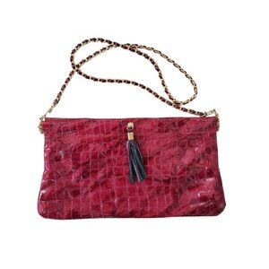 Miss Mak Montreal Pink Patent Leather Croc Embossed Clutch Chain Strap