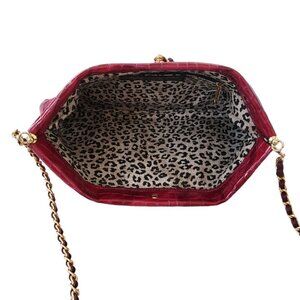 Miss Mak Designs Montreal fuchsia pink patent leather croc embossed clutch / shoulder bag with chain strap