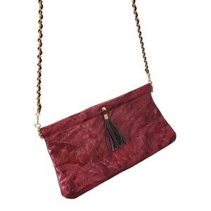 Miss Mak Montreal Pink Patent Leather Croc Embossed Clutch Chain Strap