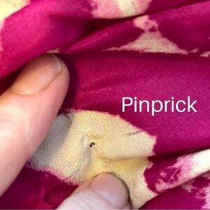 Please note: There are a few pinpricks and thread runs in the bodice - examples are shown in the photos. I believe they are from where the thread attaches to the lining to create the ruching effect. They are not noticeable because the are covered by the ruching. But please let me know if you would like additional photos or information prior to purchase. Price reflects.