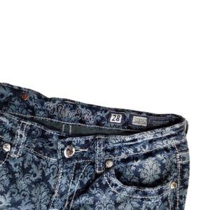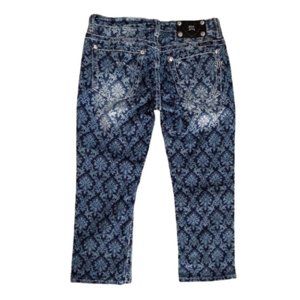 Miss Me Damask Navy Cuffed Capri Jeans 28
