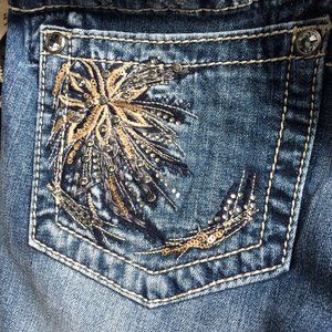 Miss Me Flower Corner Boot Jeans Sz 29 Rhinestones Sequins Medium Wash JP5636B2