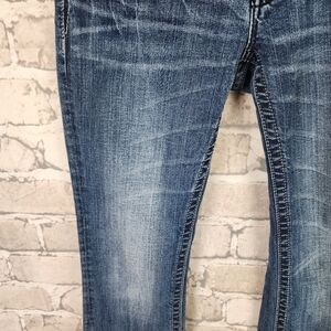 Miss Me JP6053B Low Rise Boot Cut Sequin Embellished Flap Pocket Jeans Size 28