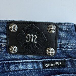 Miss Me Bootcut Jeans blue wash complemented by intricate embroidered wings in leather and subtle rhinestone accents and distressing ensuring you stand out in the best way. The low-rise waist and stretchy cotton denim provide comfort without compromising on style, making them perfect for various occasions.