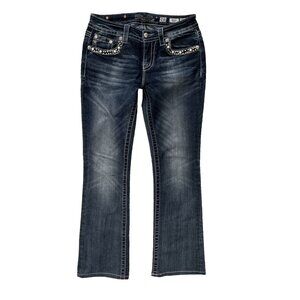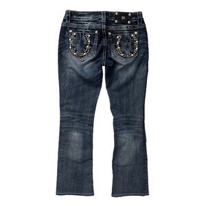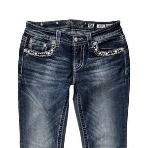 Miss Me Jeans "Horseshoe Pearls" Mid-Rise Boot 28x30 denim sparkle blue jeans