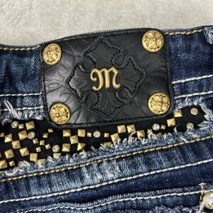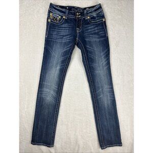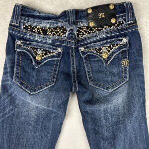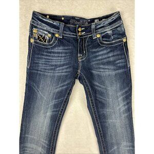 Miss Me Jeans Women 28 Blue Boot Cut Straight Low Rise Sequin Bling Rhinestone